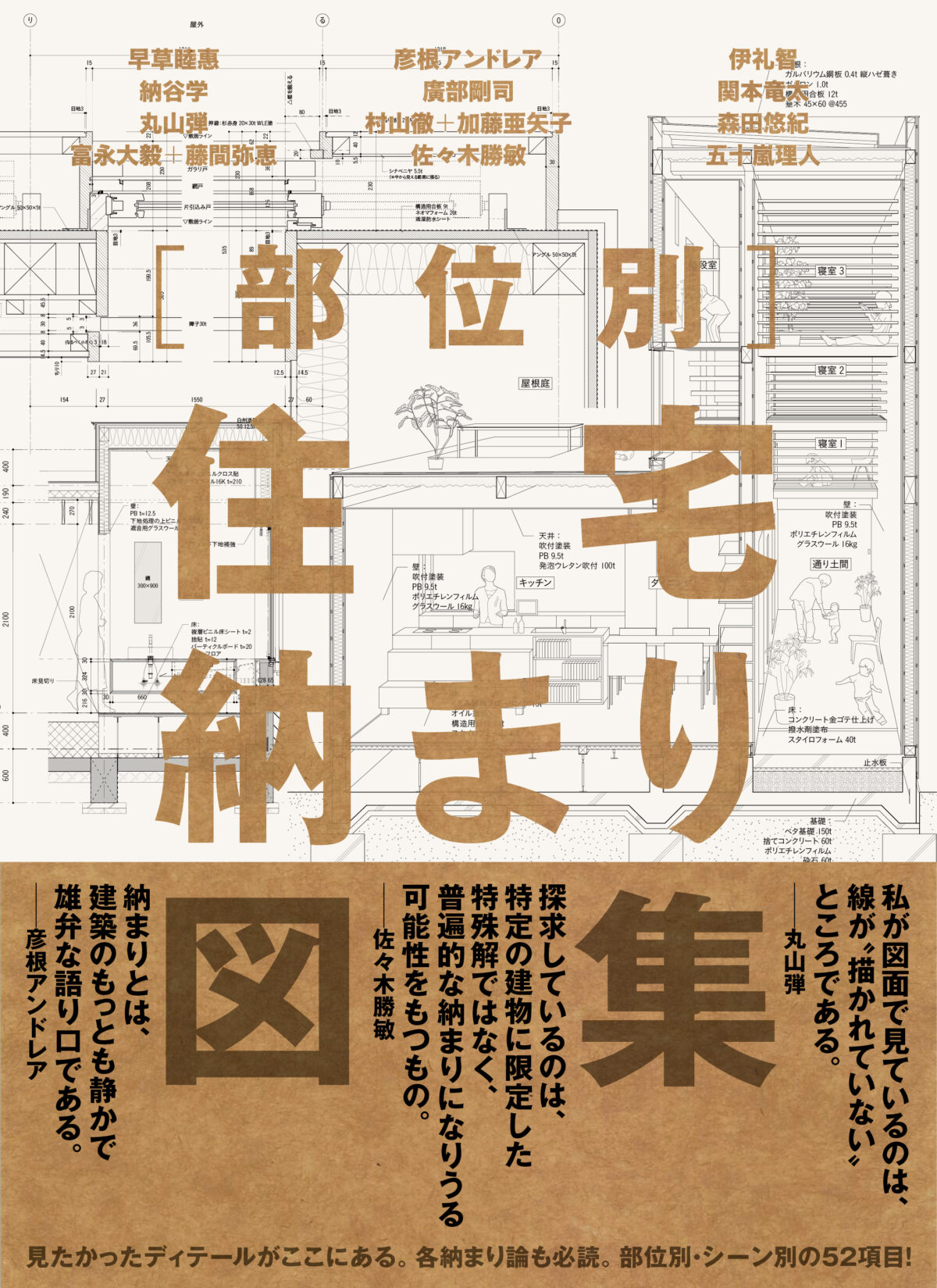 部位別 住宅納まり図集(グラフィック社)にて、彦根アンドレアの納まり論「図面の先にあるもの」・UMY[屋根・外構]・HNZ[階段]・SRY[開口部・枠廻り]を掲載していただきました。