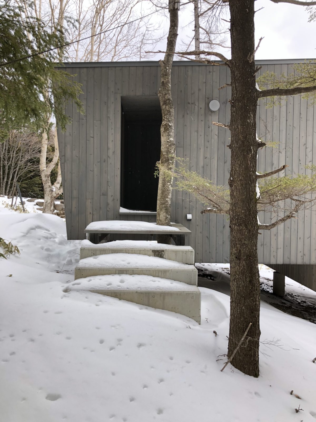 立地は東北自動車道の松尾八幡平インターテェンジを下りてすぐのところ。村はここを工業団地として開発し、多数の工場を誘致する構想だった。しかしこの環境に惚れ込んだ建築主は、エリアを丸ごと購入して、その中に自然と共生しながら働く、新しいライフスタイルの場をつくりたいと考える。熱意を込めた交渉により提案は受け入れられ、この深い森に囲まれた建築は実現したものだという。その先見的なヴィジョンの素晴らしさに、まずは深く感心させられる。