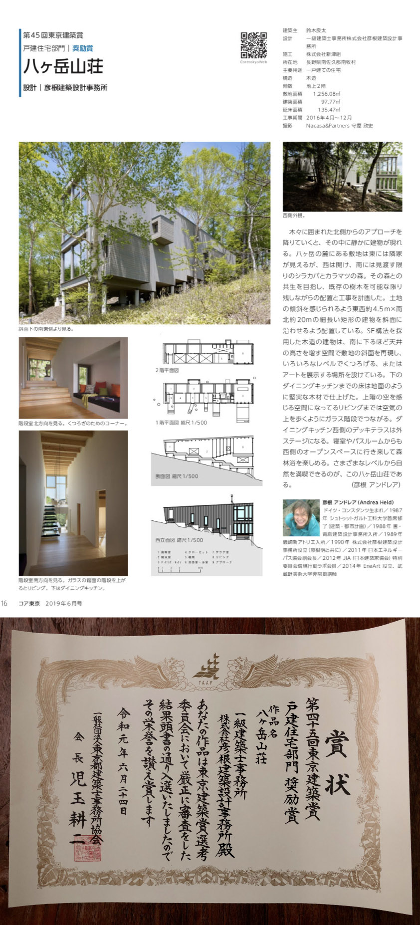 この度、SYAが第45回東京建築賞 奨励賞を受賞致しました。